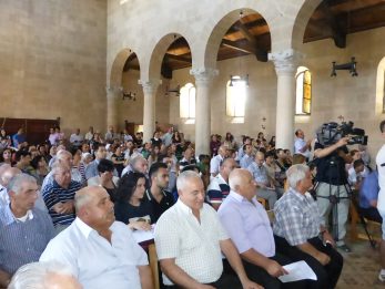 Together with short speeches, the leading figures of the sit-in focused on their attachment to the Holy Land, the responsibility of the authorities to protect the Holy Places, the right of Christians to live in security like all other citizens and the necessity for a strong peaceful coexistence among all groups in Israel. Others, mainly Scouts, expressed their readiness to work with the Benedictines – Abbot Collins, Fr. Basilius, Fr. Jonas, Fr. Mathia and others, to restore the damaged parts.