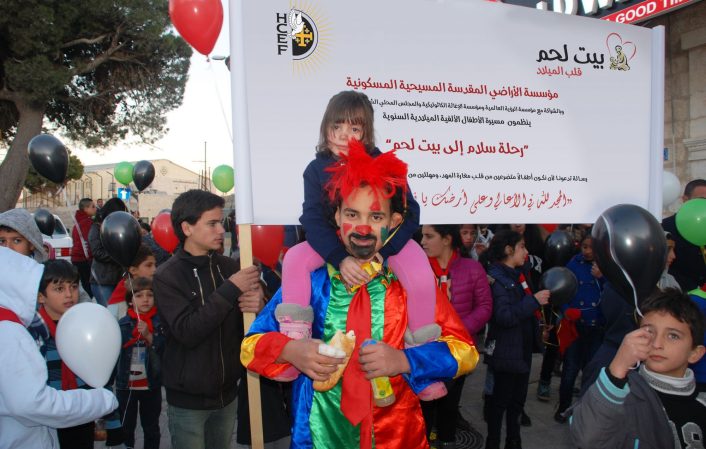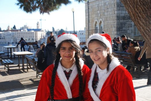 After the festivities, the children visited the Church of the Nativity, enjoyed the life size Nativity scene in Manger Square and eagerly awaited the lighting of Bethlehem’s giant Christmas tree. Although it was a cold day in Bethlehem, the children’s celebration warmed the hearts of the entire community. During these difficult times, the event provided a welcome atmosphere of peace, joy and hope.