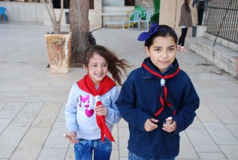 Hailing from dozens of schools and scout groups throughout the region, over 500 children gathered at Catholic Action Center for afternoon festivities that included a celebratory lunch, a Christmas play performed by a local theater group, face painting, and of course, a visit from Santa Claus! Festivities were kicked off by an opening ceremony at which Archbishop Atallah Hanna and HCEF Regional Director, Eng. Anthony Habash, personally welcomed children and distributed Christmas gifts. Eng. Habash said, “We at HCEF are committed to keeping this Christmas tradition alive. Children must be given an opportunity to express their joy and enjoy the good news! They deserve this as ancestors of the first followers of Christ, those who were privileged to witness His birth in Bethlehem over 2000 years ago.”