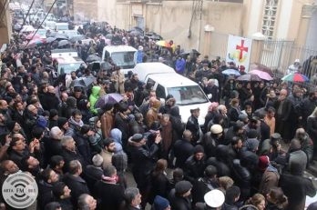 Qamishli, Syria — A funeral service was held today in Qamishli for the 13 Assyrians who were killed yesterday in the bombing of three restaurants. The attacks were carried out by ISIS, who have claimed responsibility. At least one of the attacks was by a suicide bomber. All of the restaurants are owned by Assyrians and are located in the Assyrian quarter of the city.