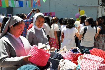 A festive meal followed as everyone gathered to share in the specialty food prepared by the different communities. In a corner of the yard, baskets made by the Kuchinate workshop were for sale. The colorful baskets were hand-crocheted by African women refugees, who were victims of violence.