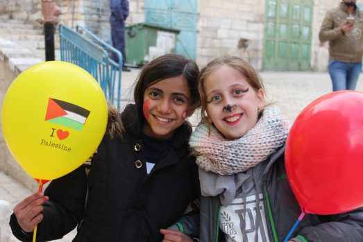 After their tour, the children joined in with local families to participate in a Christmas celebration at Catholic Action Community Center, where they enjoyed face painting, games, and treats followed by an interactive Christmas play. After receiving a gift from Santa, the group of 400 strong processed down Star Street to Manger Square—down the very path that the Holy Family took over 2000 years ago! The procession was met with fanfare, as community members lined the streets, enjoying the singing and laughter of Palestine’s children. The procession commemorates Jesus’ call to “follow the children, ” and serves as an important reminder to the community that our children are our future, and that it is our responsibility to educate them about their history, heritage and identity.