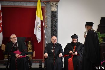 JERUSALEM – On Tuesday, April 3, 2018, Archbishop Pierbattista Pizzaballa, Apostolic Administrator of the Latin Patriarchate of Jerusalem, welcomed the Heads of Churches at the Latin Patriarchate of Jerusalem who came to exchange Easter greetings in the presence of the bishops and priests from the Latin Patriarchate.