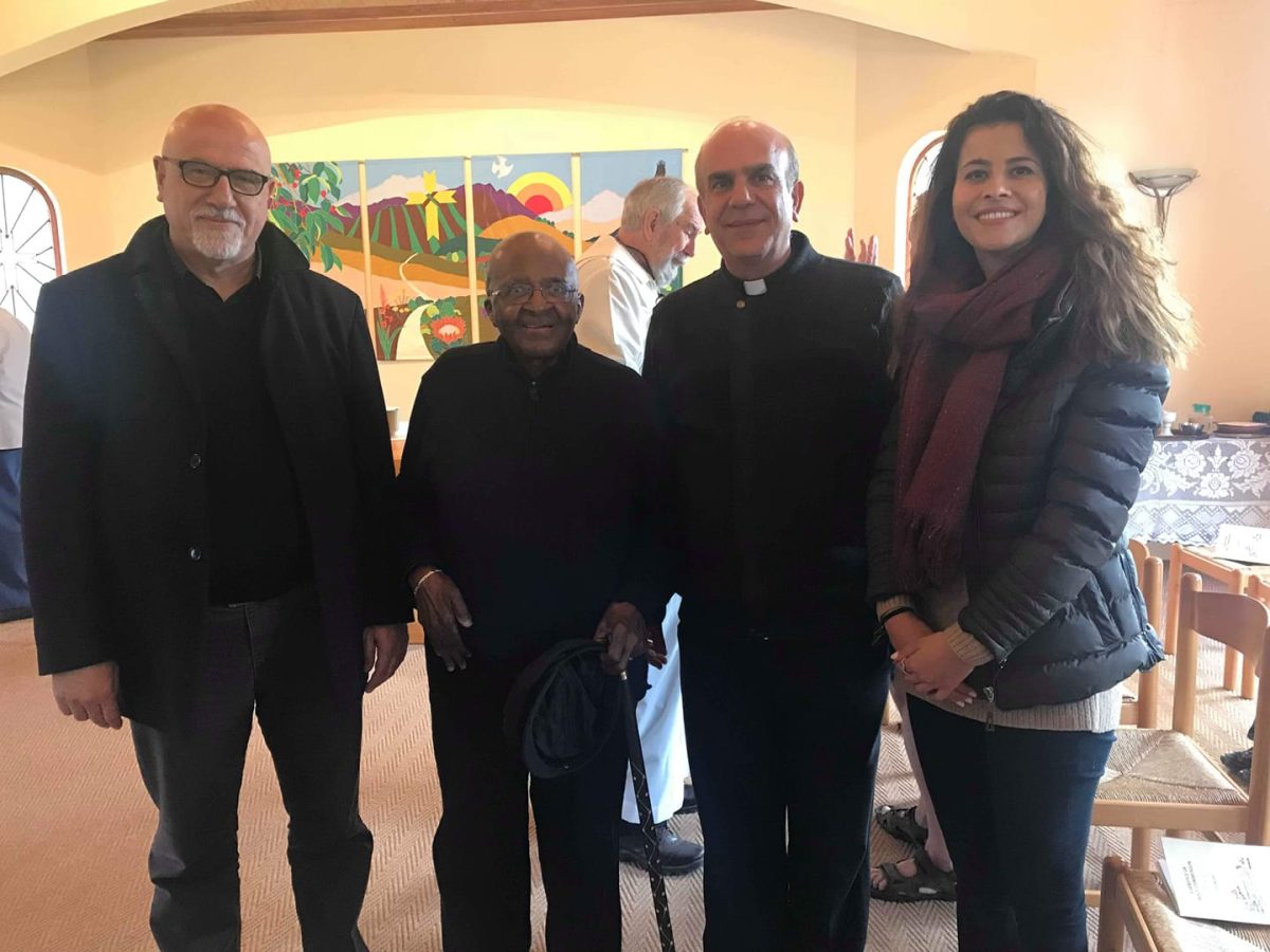 A Kairos Palestine delegation visited South Africa for a week. The delegation was: Father Jamal Khader, Mr. Rifat Kassis and Ms. Muna Nassar. The delegation met with many Christian and Islamic leaders, leaders of some churches, the Palestinian ambassador, the staff of the Palestinian embassy and representatives of different ministries, official institutions and political parties, including representatives of the ANC and many civil society groups, pro-Palestinian groups and representatives of the South African Resistance. The Kairos delegation stressed the need to strengthen the awareness of churches and civil society about the plight of the Palestinian people as a result of the Israeli occupation and the Apartheid regime imposed by the occupation on us wherever they are as the South African community has suffered apartheid, racism and oppression for many decades. The delegation also met former South African Archbishop Desmond Tutu. The delegation delivered a number of lectures in many places, including the University of Pretoria. The visit aimed at explaining the Palestinian issue and the recent developments on the ground, and showing the importance of South Africa’s role in solidarity with the Palestinian people especially that it has went through this experience. It also aimed at strengthening cooperation relations to support the Palestinian cause at all official and popular levels. The delegation also stressed the need of South Africa to be a pioneer in supporting the Palestinian cause in the African continent and the world, because of its great significance, moral and political importance in the world.