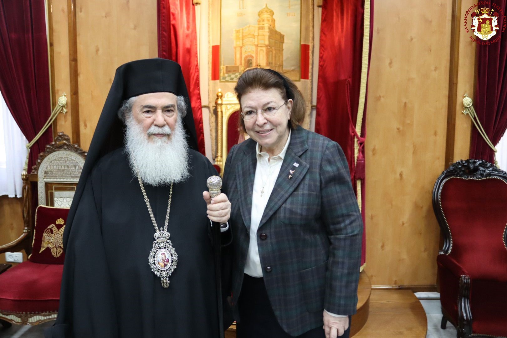 Source Link: https://en.jerusalem-patriarchate.info/chronicle/his-beatitude-theophilos-iii-welcomes-greek-minister-of-culture-lina-mendoni-at-the-patriarchate-of-jerusalem/