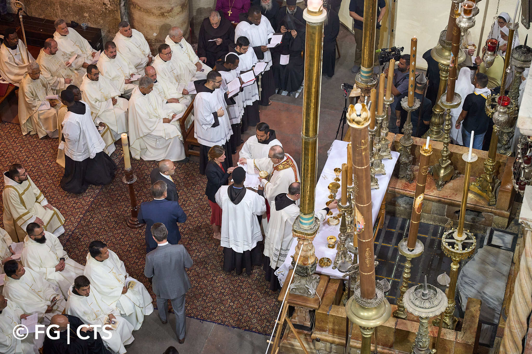 The Eucharistic celebration was presided over by the Latin Patriarch of Jerusalem, Cardinal Pierbattista Pizzaballa, and concelebrated by Mons. Adolfo Tito Yllana, the Apostolic Nuncio in Israel and Apostolic Delegate to Jerusalem and Palestine, and by Fra Francesco Patton, Custos of the Holy Land.