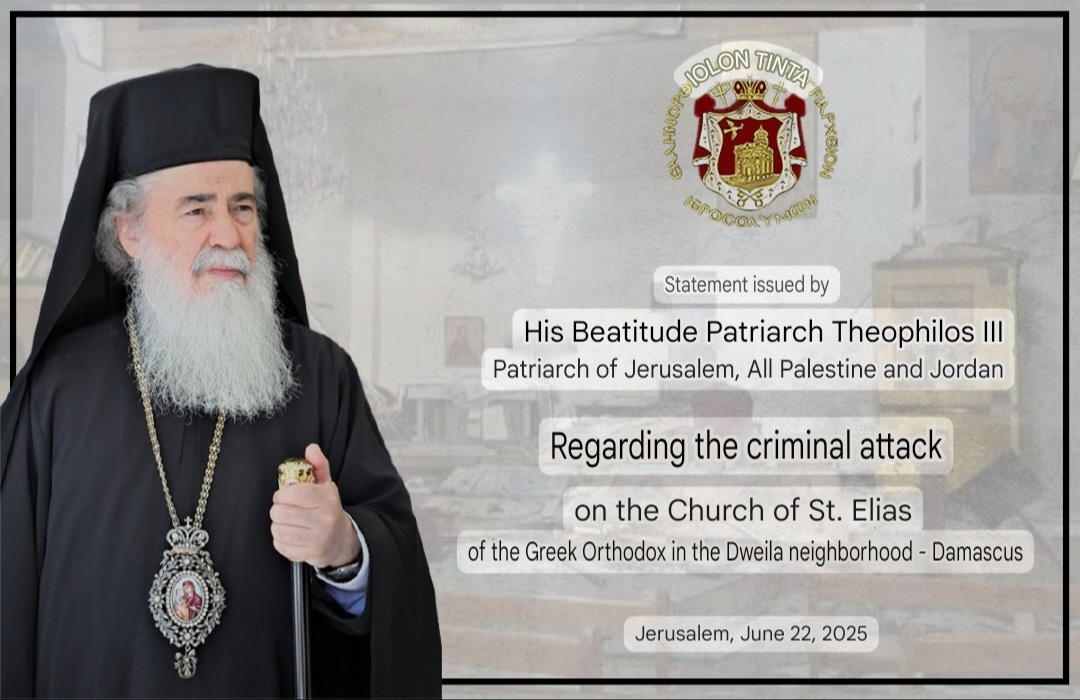 Statement by His Beatitude Theophilos III, Patriarch of Jerusalem, on the Criminal Attack Targeting Saint Elias Orthodox Church in Damascus