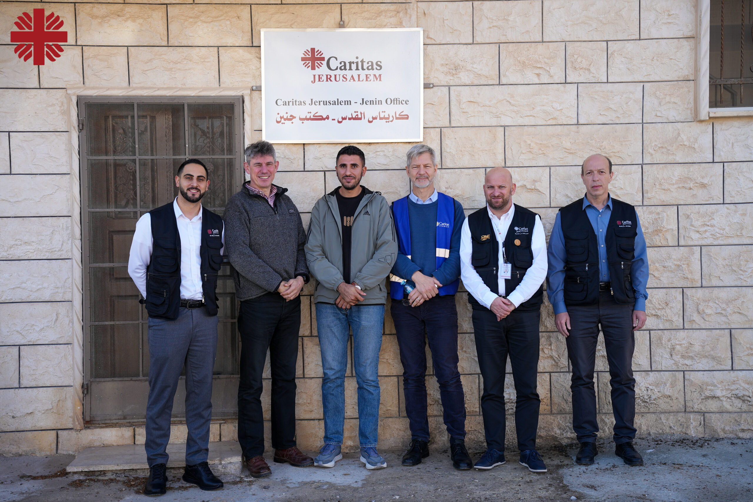 Just one day after the inauguration of the Vehicle of Hope mobile clinic in Bethlehem, Mr. Alistair Dutton, Secretary General of Caritas Internationalis, and Mr. Peter Brune, Secretary General of Caritas Sweden, accompanied by Mr. Anton Asfar, Secretary General of Caritas Jerusalem, joined Caritas Jerusalem’s team on a field visit to the northern West Bank. Their journey to Jenin Governorate offered a deep and unfiltered look into the daily struggle of Palestinian families enduring one of the harshest periods in recent history.
