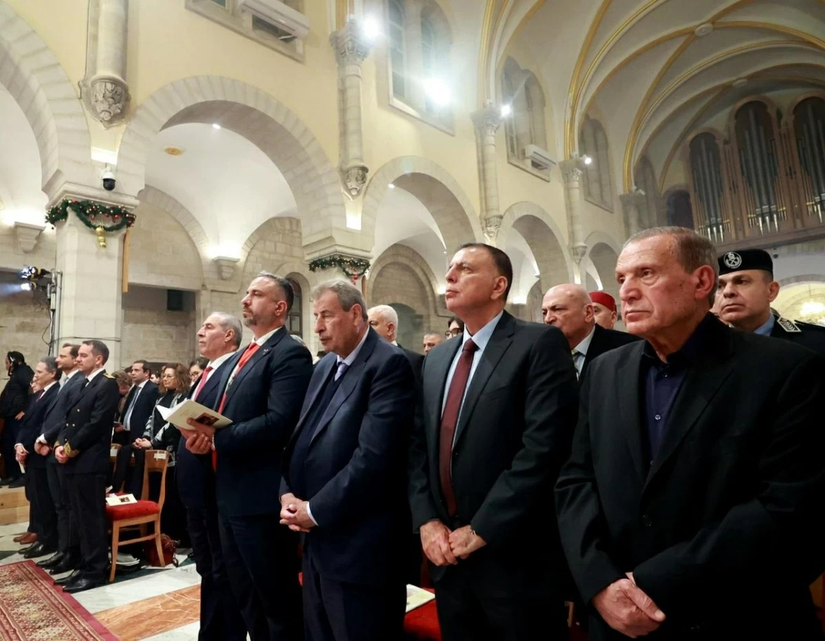 Deputising for His Majesty King Abdullah, Minister of Interior Mazen Faraya attended the Midnight Mass at the Church of the Nativity in Bethlehem on the occasion of Christmas for Christian denominations that follow the Western calendar.